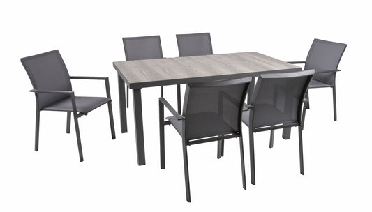 5-tlg. Alu Tischgruppe RANA Set Garten Sitzgruppe Outdoor Grau Metall Kunststoff