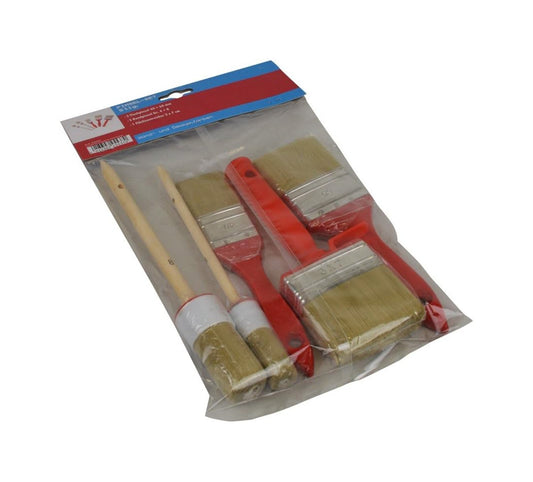 5-tlg. Pinsel Set Lasurpinsel Flachpinsel Rund Lasur Farbe Lack Flächenstreicher