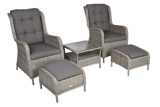 5-tlg. Polyrattan Sessel Set VALENCIA Sitzgruppe Garten Gruppe Hocker Tisch
