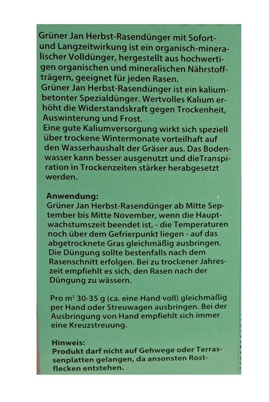 5 kg Grüner Jan Herbst Rasendünger für 160 m² Dünger Gartendünger Garten Rasen