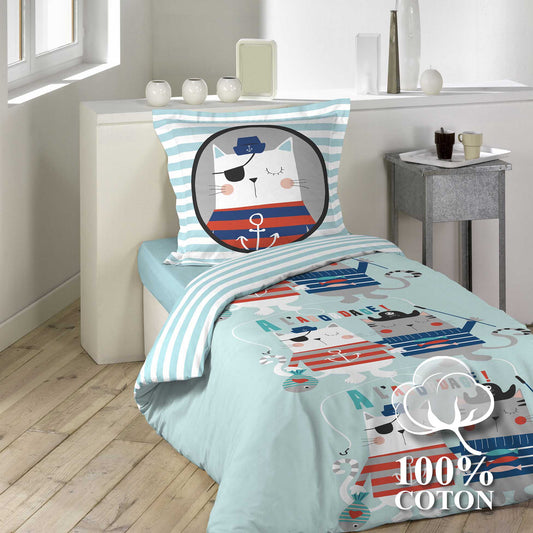 Jungen Wende Bettwäsche Pirat 140x200 Baumwolle Bettdecke Bettgarnitur blau bunt