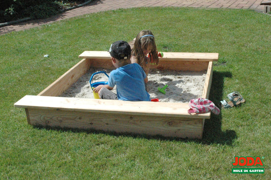 Joda Lärche Sandkasten Sandkiste 110cm Sandbox mit Abdeckplane Holz Massivholz