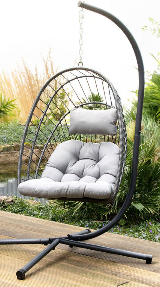 Lounge Hängesessel mit Gestell faltbar Hängestuhl Hängekorb Schaukel Sessel grau