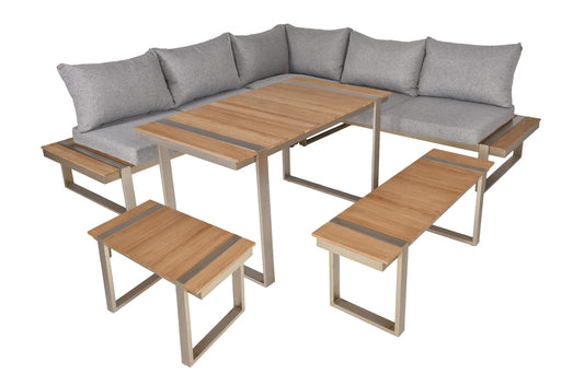 Lounge-Eckgruppe AUREA 6-tlg Garten Sitzgruppe Outdoor Beige Holz Metall Möbel