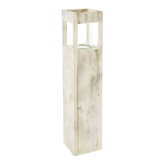 Shabby Charme Holz Windlicht 50cm Säule Bodenwindlicht Deko Kerzenhalter Vintage