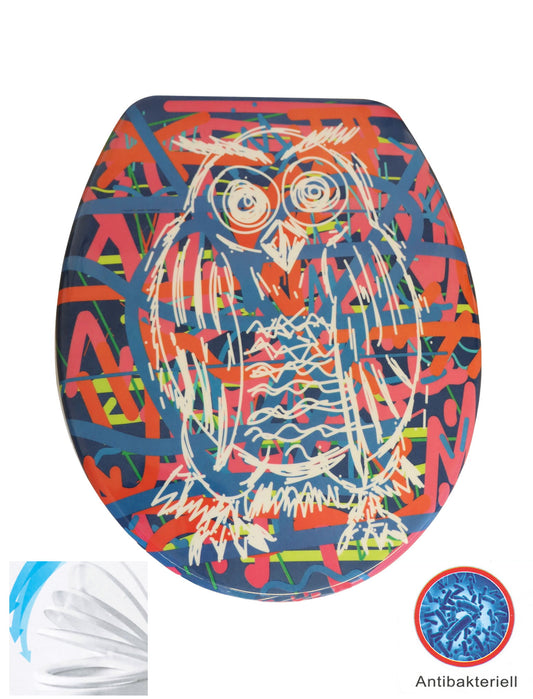 WC Sitz "Eule" Pop Art mit Absenkautomatik Deckel WC-Brille Toilettendeckel bunt