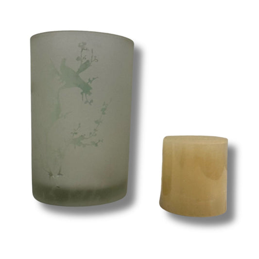 Windlicht Kerzenhalter Flowers & Birds mit Kerze aus Glas ca, Ø12cm H17,5cm