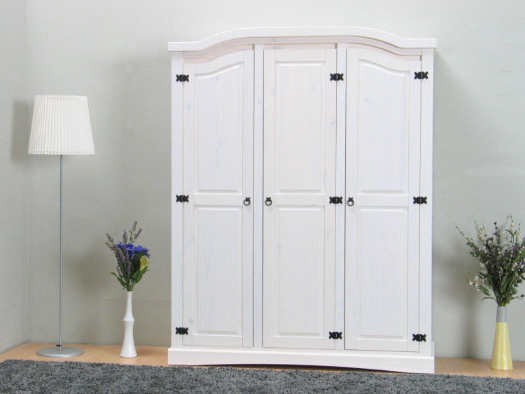 3trg massiv Kiefer Mexico Kleiderschrank "New Mexiko" Schlafzimmer-Schrank weiß