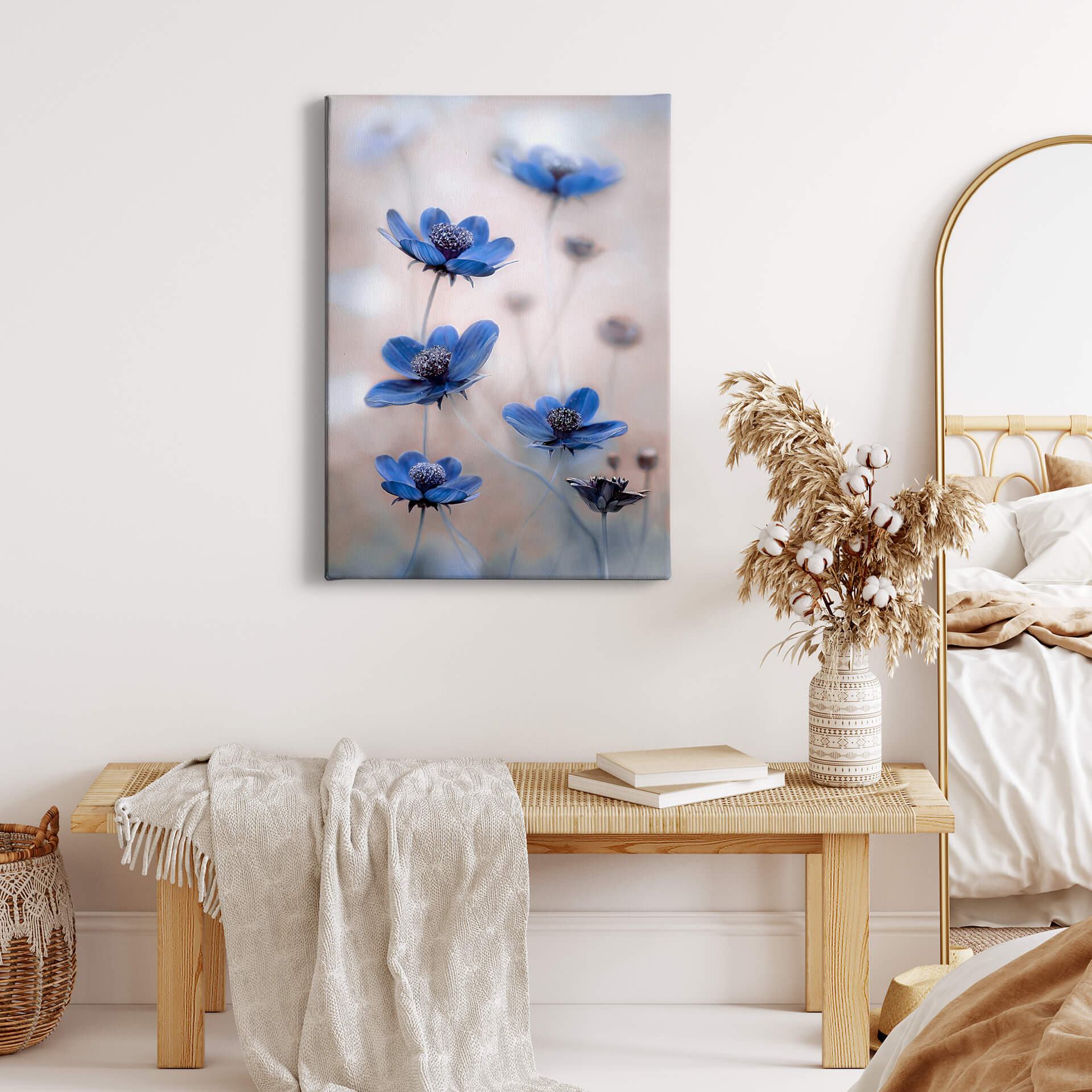 Blume Leinwandbild Blau Weiß 50x70 DD123117 Keilrahmenbild Wandbild Leinwand