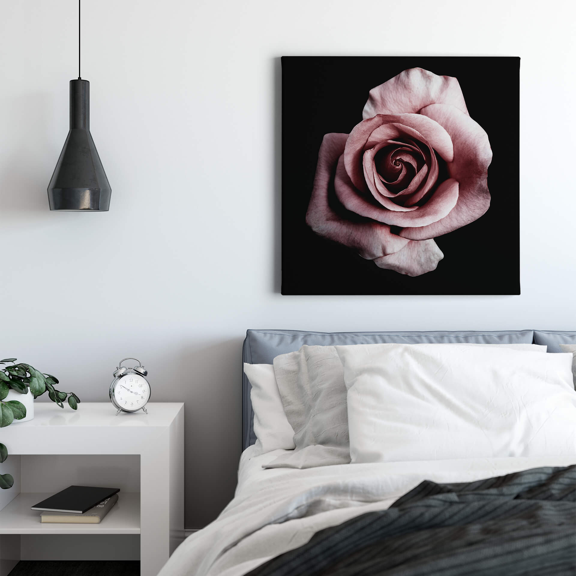 Blume Leinwandbild Rosa Schwarz 50x50 DD123256 Keilrahmenbild Wandbild Leinwand