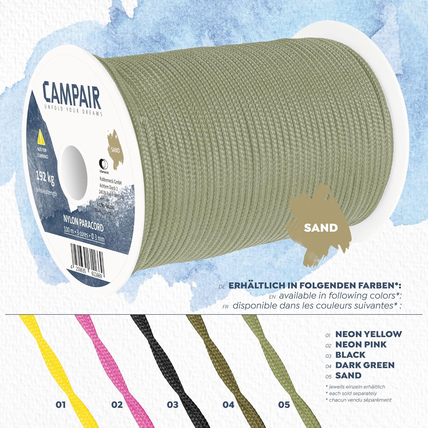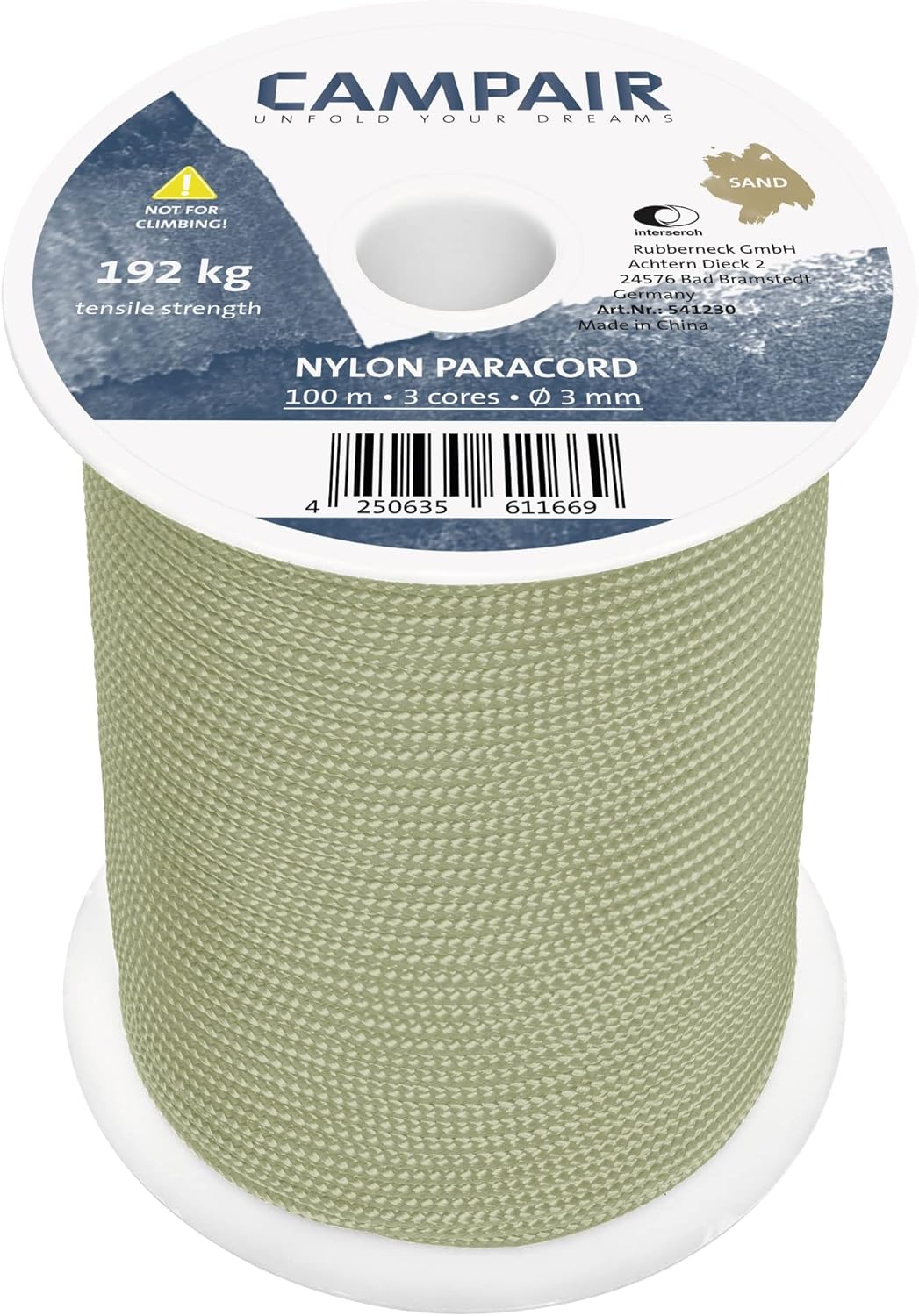 CAMPAIR Paracord Seil 100m reißfest sand Nylon Fallschirmschnur Camping Leine