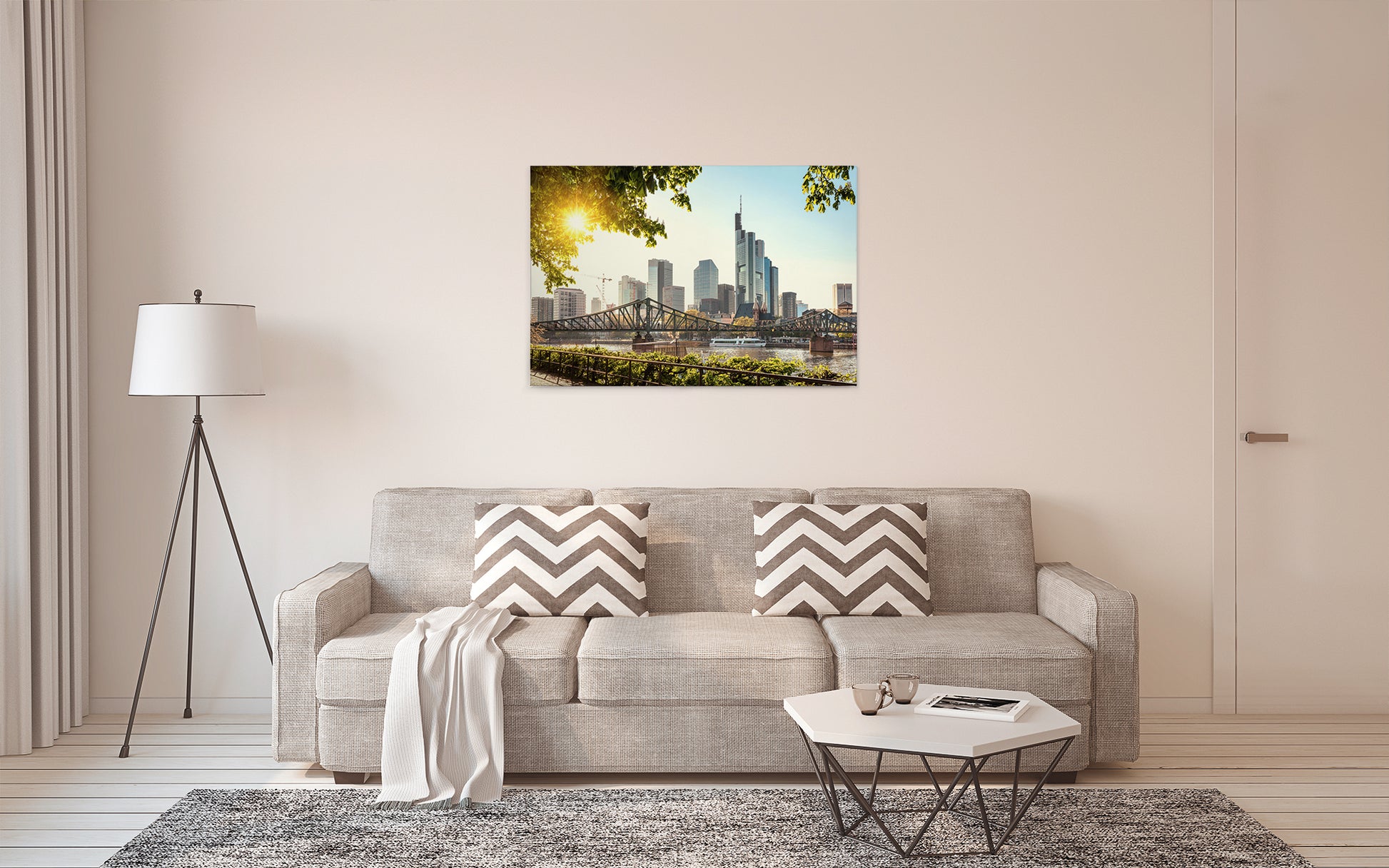 Frankfurt Leinwandbild Grau Grün 90x60 DD120332 Wandbild Leinwand Großstadt