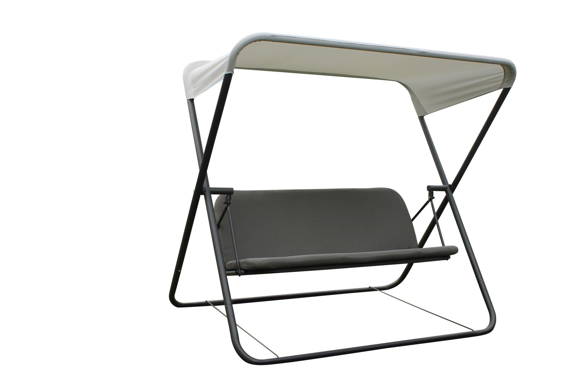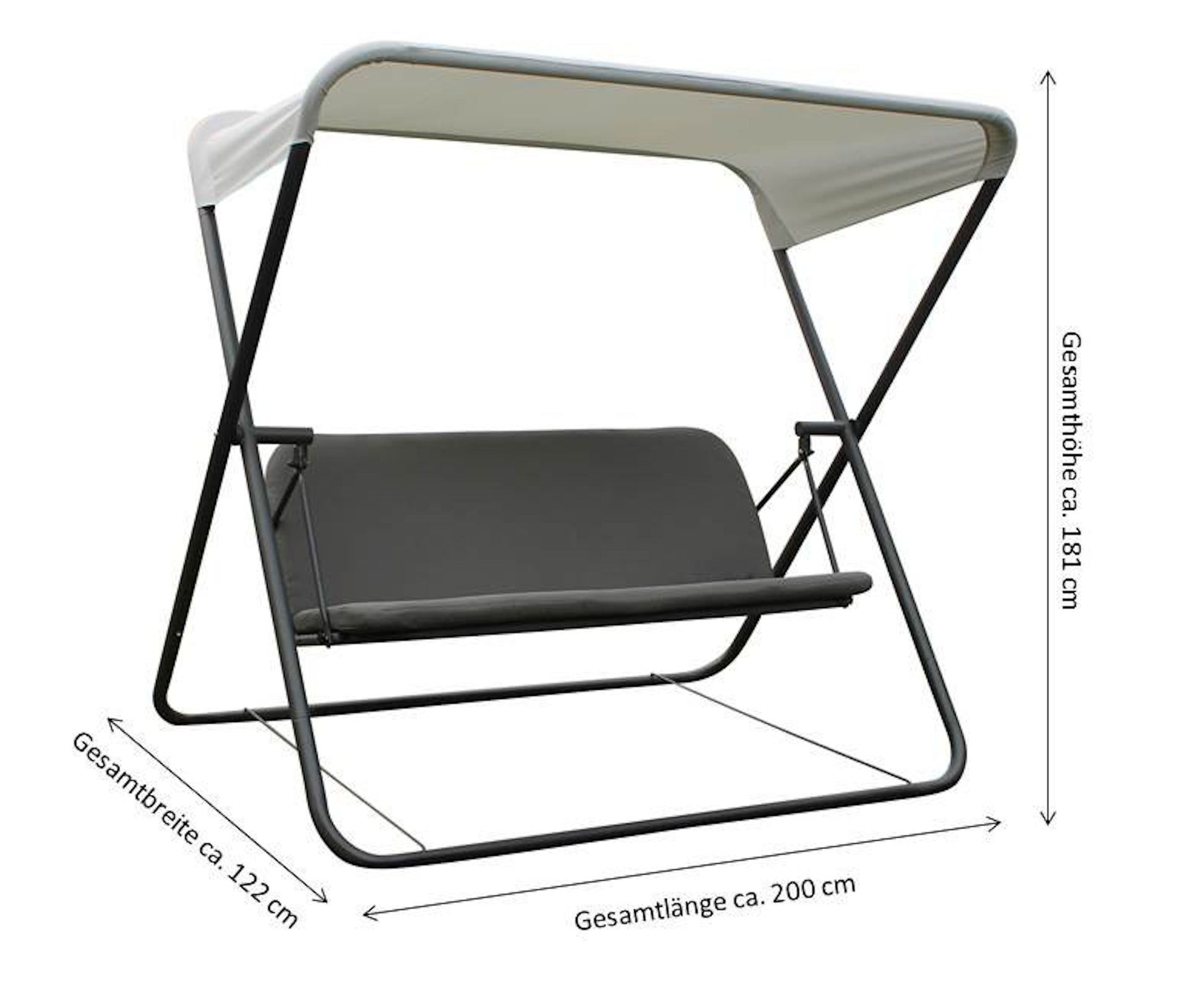 Das Gestell der Hollywoodschaukel besteht aus stabilem Stahlrohr mit einer Pulverbeschichtung in einem eleganten Anthrazit-Ton. Diese Beschichtung schützt das Gestell vor den Elementen und verleiht ihm eine lange Lebensdauer. Die Sitzfläche ist aus hochwertigem Textilen in Grau gefertigt, was nicht nur bequem ist, sondern auch strapazierfähig und wetterbeständig.
