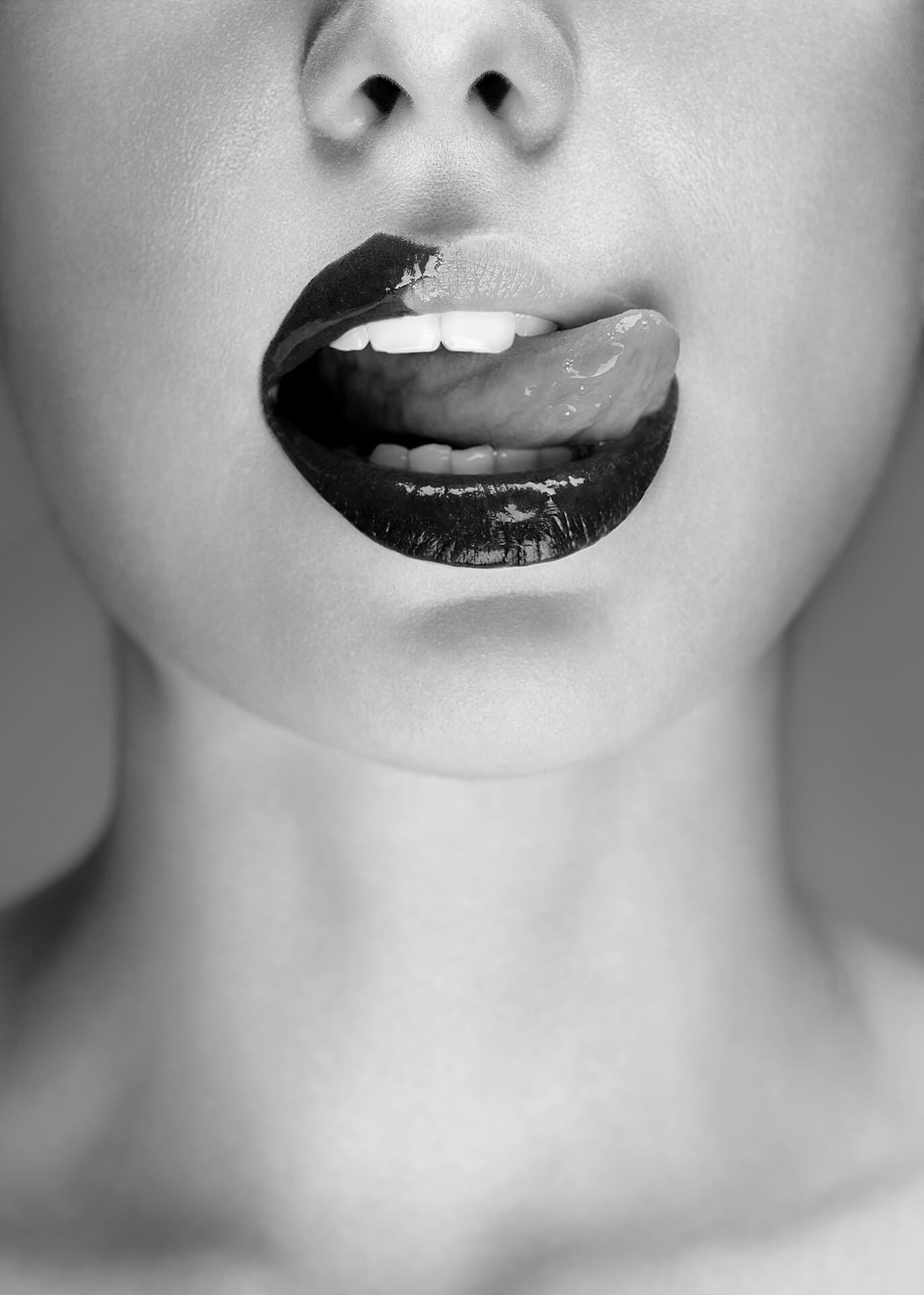 Leinwandbild Frau Mund Weiß Schwarz 50x70 DD123140 Keilrahmen Wandbild Leinwand