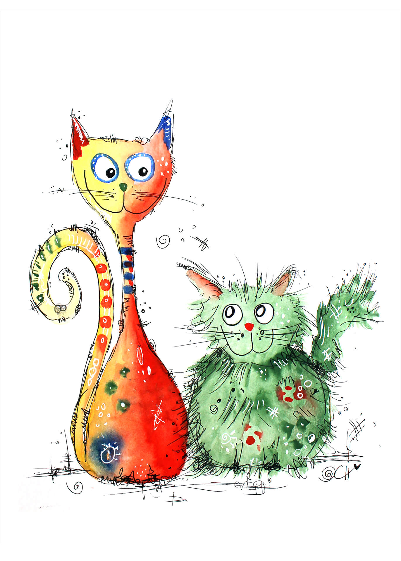 Leinwandbild Kinderzimmer Katzen Grün Orange Weiß 50x70 DD123194 Wandbild