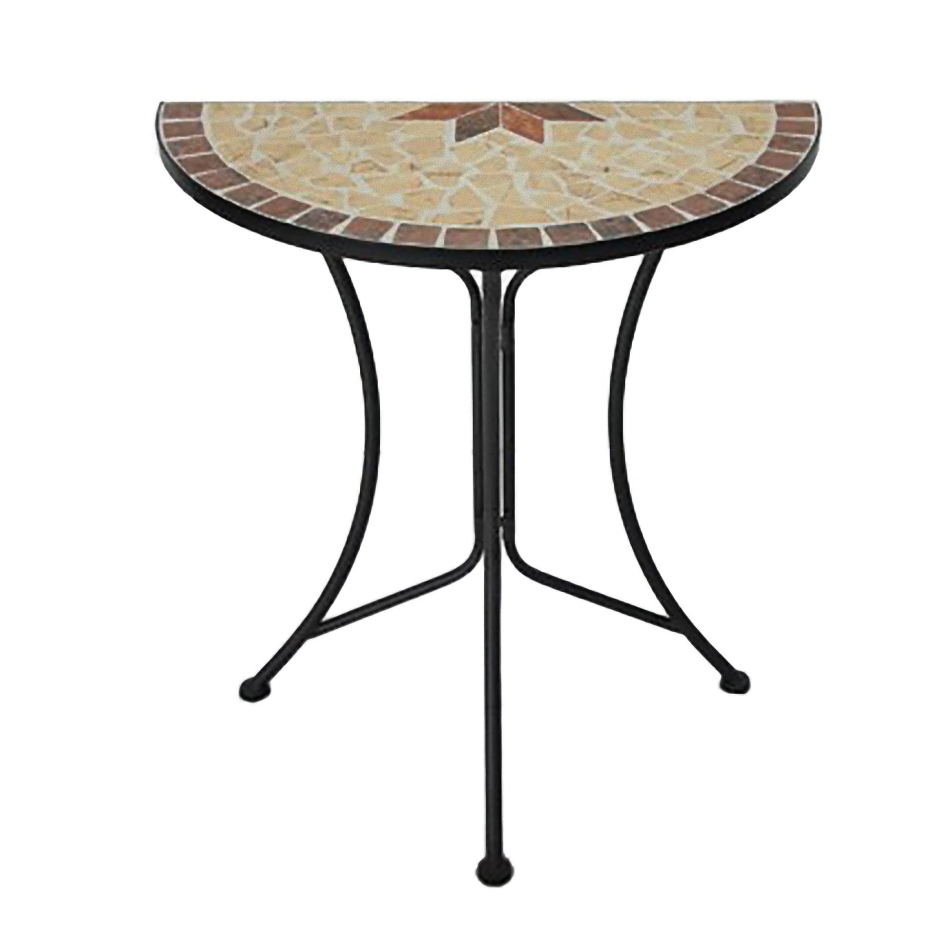 Mosaiktisch AMARILLO halbrundHersteller: Garden Hauptmaterial: Stahl Mosaik (Metall) Artikelnummer: 950526 Maße ca.: Ø60x30x70cm Farbe(n): Braun