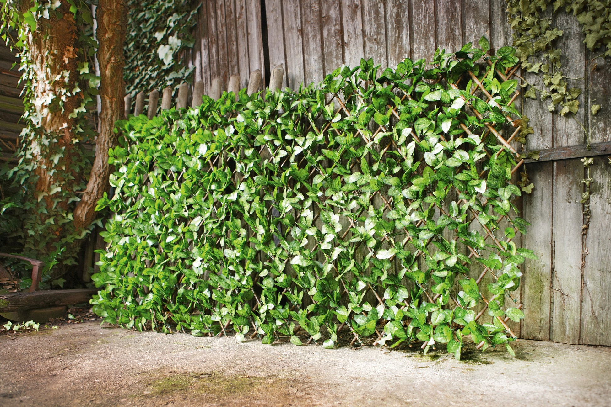 - Weidenzaun mit Kunstpflanzen (Blätter)